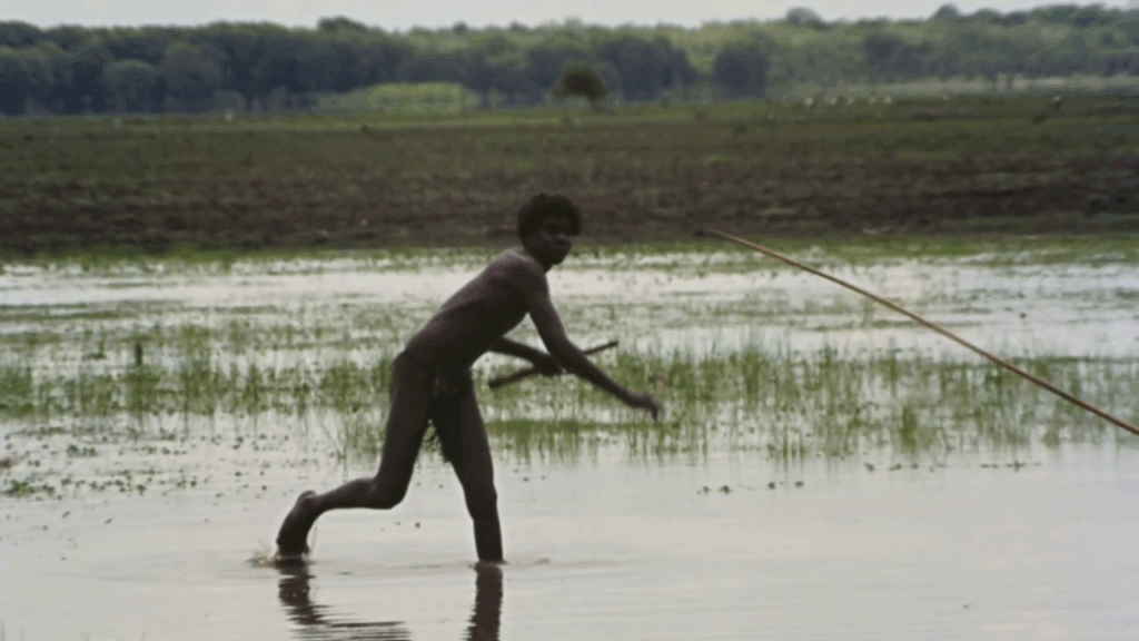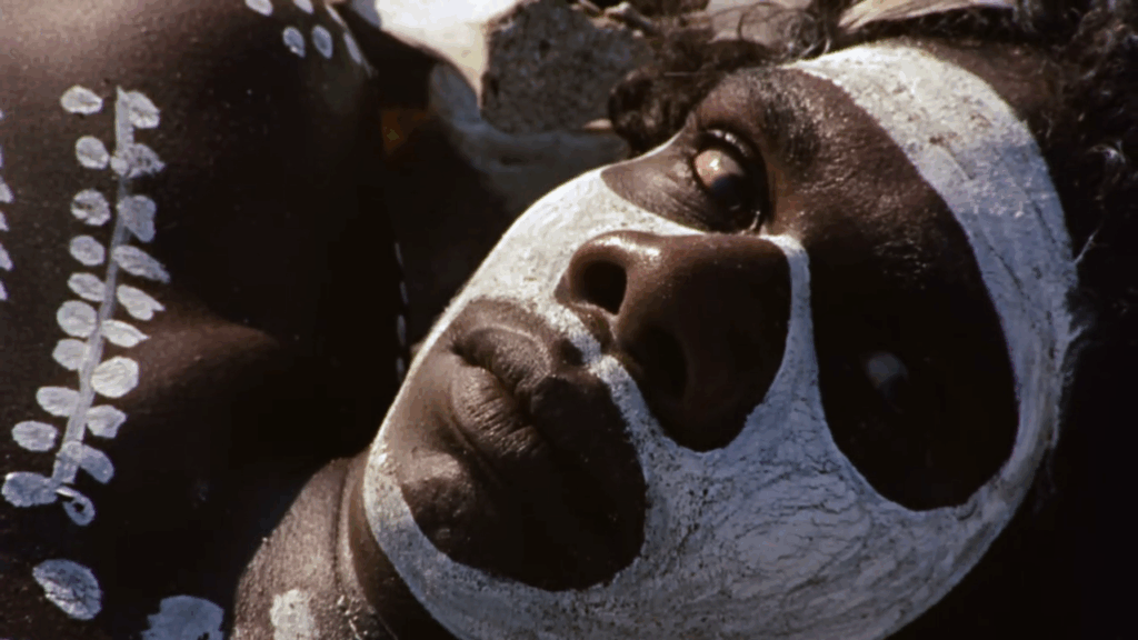 La caméra de Roeg est comparable, dans ses arrêts sur image ou dans ses images arrière, à une arme à feu massacrant non seulement la faune (on se souvent du massacre des kangourous dans Wake in fright de Ted Kotchef, produit la même année), mais aussi invalidant le rite du jeune aborigène en lui ablatant tout le sens, toute la symbolique de sa culture, toute sa communion avec la nature jusqu’à l’achever dans sa parade amoureuse que plus personne (les deux autres protagonistes) ne semble vouloir voir. Le travail à la chaîne technologique des mises à mort d’animaux, auquel est confronté le jeune aborigène, rappelle l’ivresse meurtrière de Robert Taylor envers les bisons afin de nuire frontalement aux Indiens d’Amérique du Nord dans La Dernière chasse (1956) de Richard Brooks.