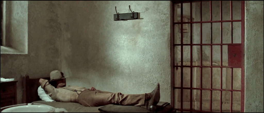 Dans Un génie, deux associés, une cloche, Damiano Damiani retourne au western (neuf ans après El Chuncho) et en propose une version parodique et burlesque dont le dispositif narratif repose sur une alliance bouffonne, pour ne pas dire circassienne ! Il parodie le cinéma américain autant que son double critique, le western italien. En effet, Damiani pastiche le dispositif mis en place par Salvatore Laurani et développé ensuite par Franco Solinas… À savoir un gringo qui manipule un Mexicain (El Chuncho (1)), un Noir (Queimada) et enfin, dans sa version humoristique, un Indien (Un génie, une cloche, deux associés). Terence Hill devient une sorte de Polichinelle (2) omniscient ayant le don d’ubiquité d’un Droopy ou les propriétés formelles et narratives d’un Fantômas !