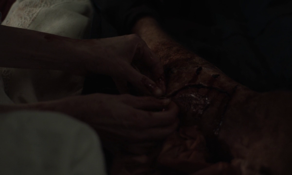 Enfin, la leçon morale du film est la suivante : plus on fait du mal à l’Autre (quel qu’il soit), et plus on nourrit à son égard une terreur qui ne tardera pas à se transformer en haine pure. Il est plus facile de continuer de haïr l’Autre plutôt que de reconnaître ses tords à son égard. C’est une escalade de violence pour l’un et une chute pour l’autre. Ces femmes vont faire du mal à cet homme (comme l’amputer par exemple) puis le haïr après qu’il ait abusé d’elles, en répondant à leurs avances certes mais non sans complaisance et profit lié à son statut et son sexe. Cette haine (de ces femmes dans le cas des Proies) n’est autre qu’un aveu de la reconnaissance du mal qui a été commis (lui couper la jambe), mais dont elles ne veulent assumer le prix à payer, même si elles pourraient valider cette haine dans leur for intérieur de sorte à la reconnaître secrètement. Dans Les Proies, cette haine finit par émaner du « clan » des femmes, pas si bafouées qu’elles le prétendent pour justifier de l’amputation de McB, se propager du côté de McB (après son amputation), mais c’est la peur qui, s’auto-alimentant – et grâce à son instrumentalisation par Martha -, fait triompher la haine. Comme la scène du repas final, moment émotionnel culminant du film attestant d’une cruauté collective paroxystique et effrayante qui enlèvera une vie (McB) et en brisera définitivement une autre (Edwina).