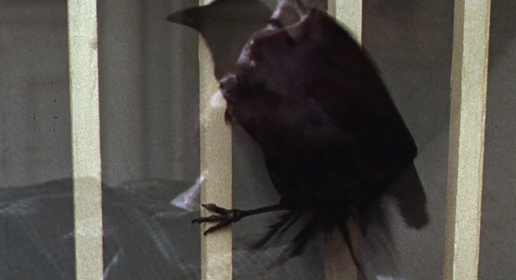 Mais Eastwood n’est pas seulement infantilisé ou réifié à son simple appareil sexuel qu’on lui aurait amputé au travers du substitut de sa jambe, il est également victime de la vision thériomorphe que lui appose la petite fille qui, il faut le rappeler, est la première personne qu’il rencontre dans le film et qui lui fait braver les règles de la propriété privée en l’y invitant. Cette petite fille, à l’instar de Terence Stamp avec les papillons et les jeunes femmes dans The Collector (1965, William Wyler), semble collectionner les petits animaux et le film va contribuer verbalement et visuellement à son approche infantile toute singulière, relevant d’un bestiaire très précis. En effet, Eastwood, tout du long, sera associé à une succession d’animaux en tous genres : l’hanneton massacré par des fourmis, le coq qui inspire les poules à pondre de nouveau, le corbeau blessé accroché à une rambarde puis gisant au pied du balcon et enfin cette petite tortue que lui-même, excédé, jettera contre un mur et, sans le savoir, scellera ainsi son sort funeste.
